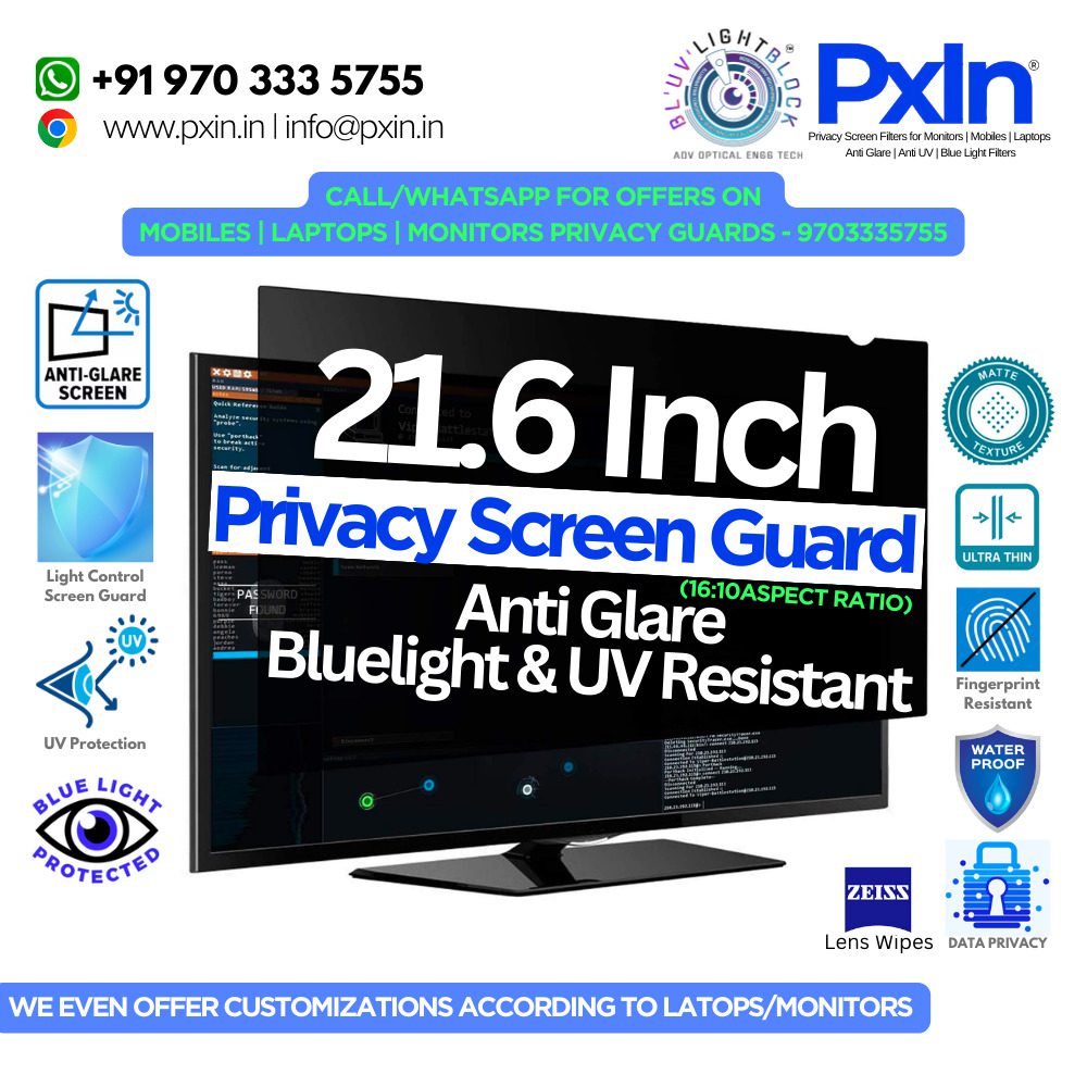 21.6 inch (16:10) Monitor – Pro Privacy Screen Guard | Anti Glare | Anti Blue Light | UV(A/B/C) Block | PXIN