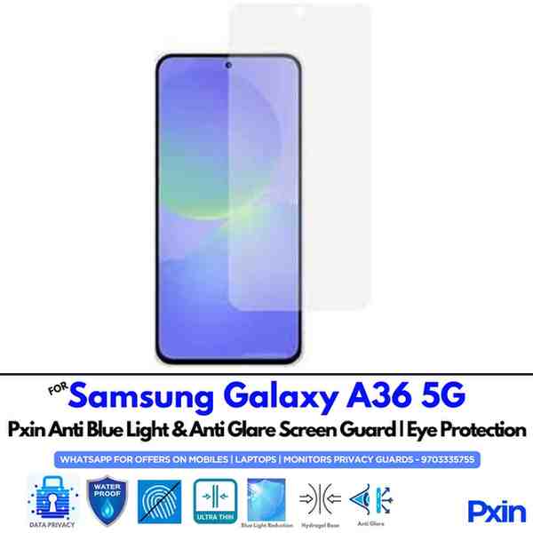 Shield your eyes with the Anti Blue Light & Anti Glare Screen Guard for Galaxy A36 5G. Designed to reduce eye strain and glare with matte clarity. Hassle-free, bubble-free installation. Ideal for work, study, and gaming.