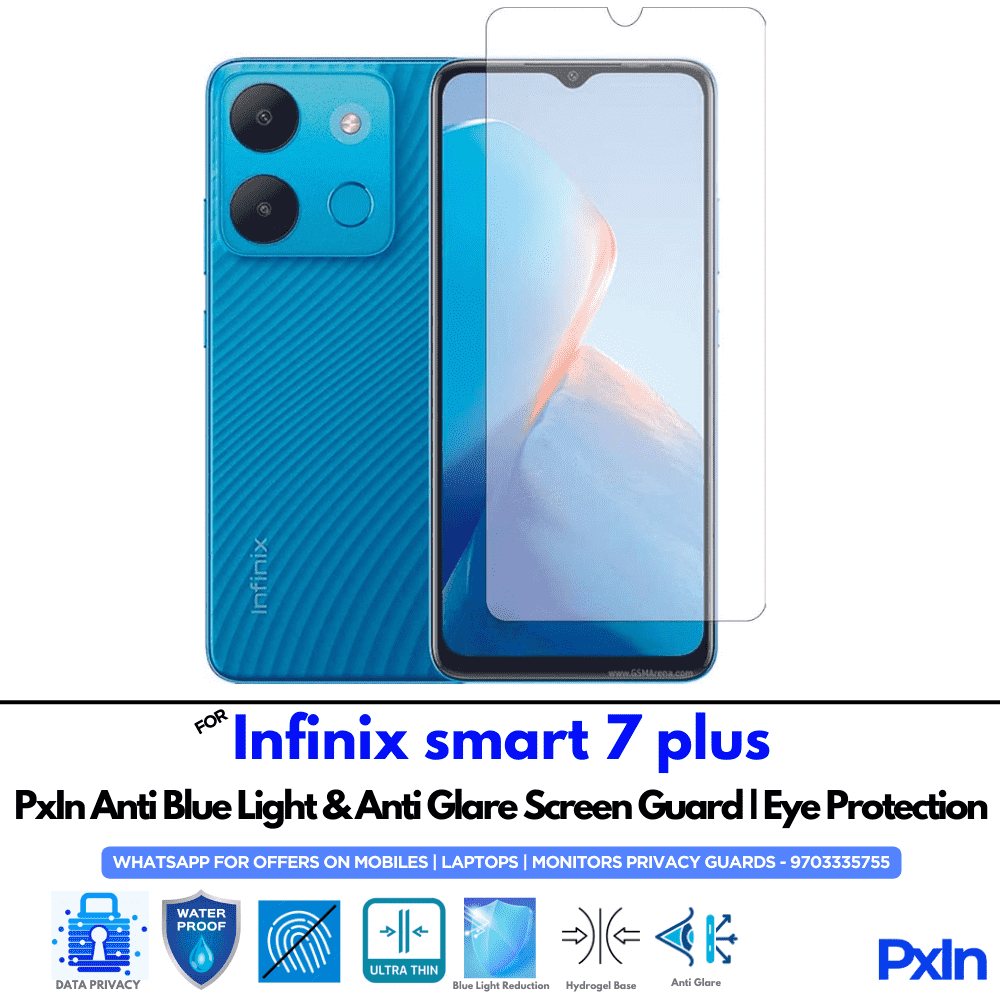 Shield your eyes with the Anti Blue Light & Anti Glare Screen Guard for Infinix smart 7 plus Mobile. Designed to reduce eye strain and glare with matte clarity. Hassle-free, bubble-free installation. Ideal for work, study, and gaming.