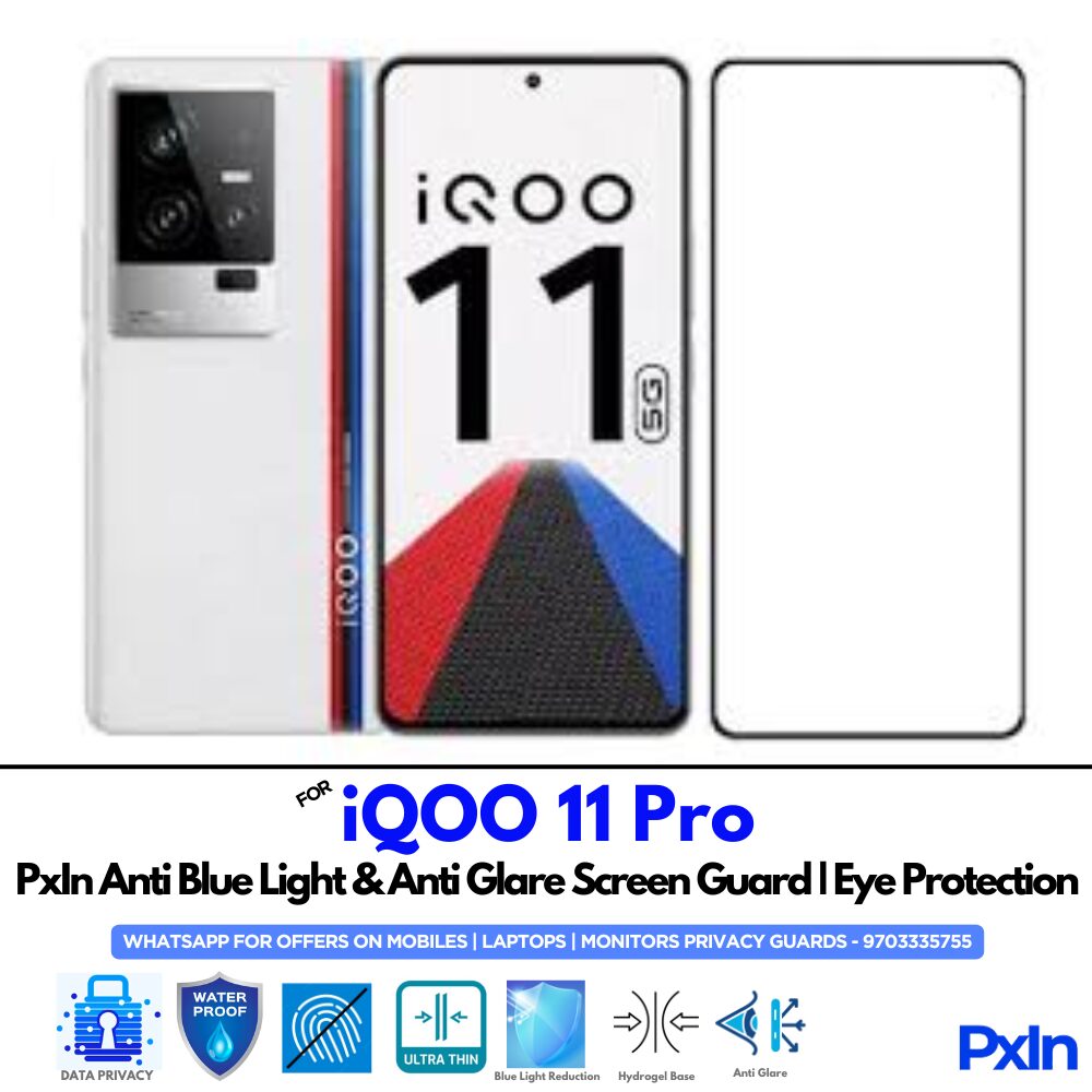 Shield your eyes with the Anti Blue Light & Anti Glare Screen Guard for iQOO 11 Pro Mobile. Designed to reduce eye strain and glare with matte clarity. Hassle-free, bubble-free installation. Ideal for work, study, and gaming.