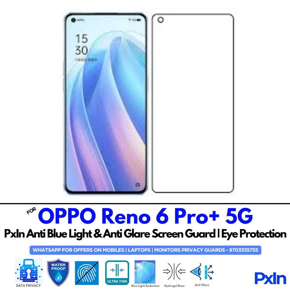 Shield your eyes with the Anti Blue Light & Anti Glare Screen Guard for OPPO Reno 6 Pro plus 5G Mobile. Designed to reduce eye strain and glare with matte clarity. Hassle-free, bubble-free installation. Ideal for work, study, and gaming.