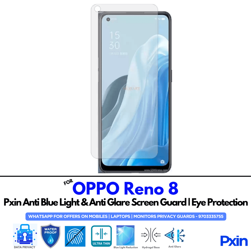 Shield your eyes with the Anti Blue Light & Anti Glare Screen Guard for OPPO Reno 8 Mobile. Designed to reduce eye strain and glare with matte clarity. Hassle-free, bubble-free installation. Ideal for work, study, and gaming.