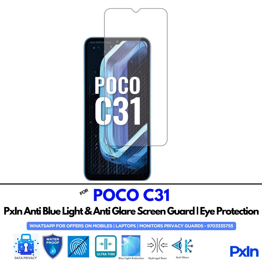 Anti Blue Light and Anti Glare Screen Guard for POCO C31 Mobile
