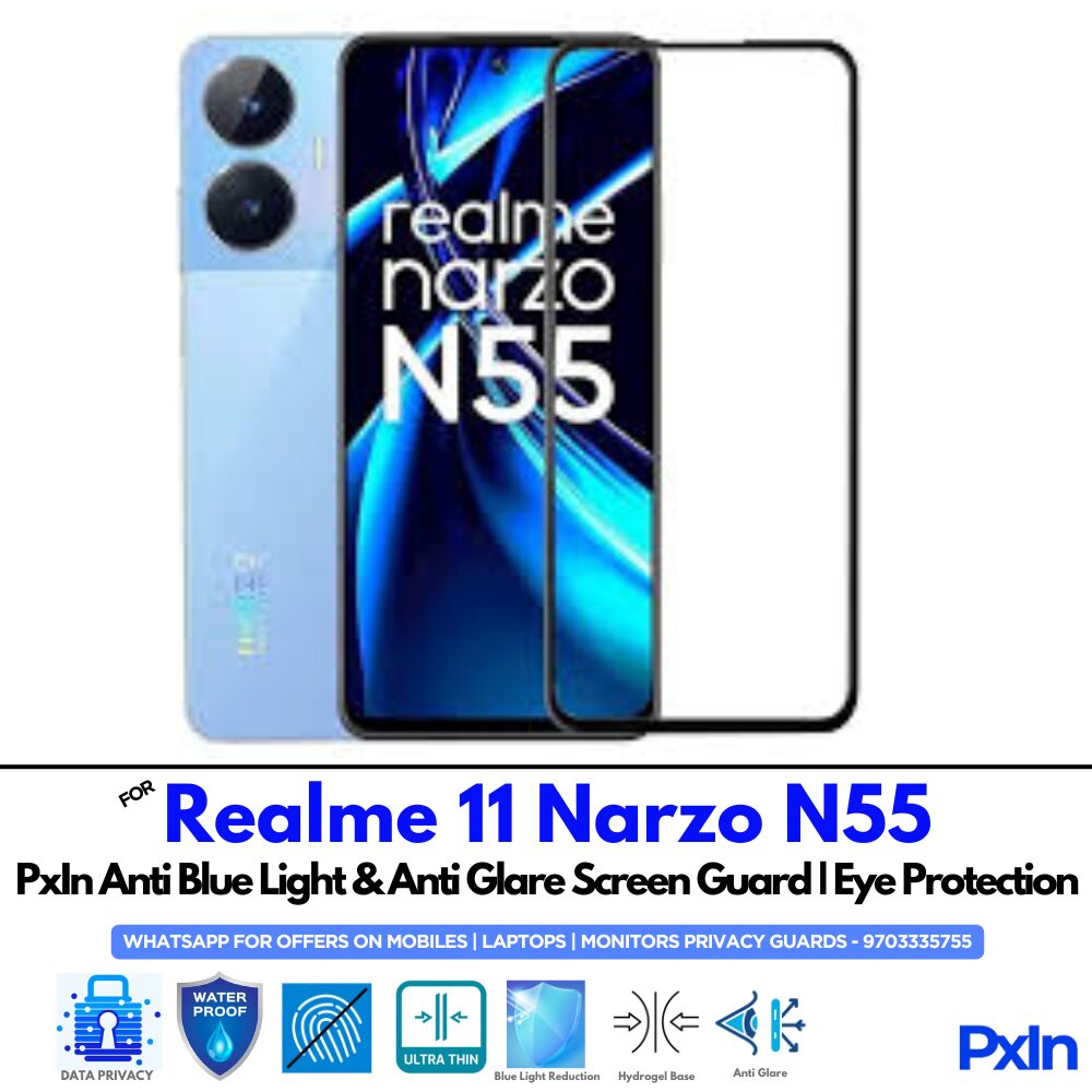 Shield your eyes with the Anti Blue Light & Anti Glare Screen Guard for Realme 11 Narzo N55 Mobile. Designed to reduce eye strain and glare with matte clarity. Hassle-free, bubble-free installation. Ideal for work, study, and gaming.