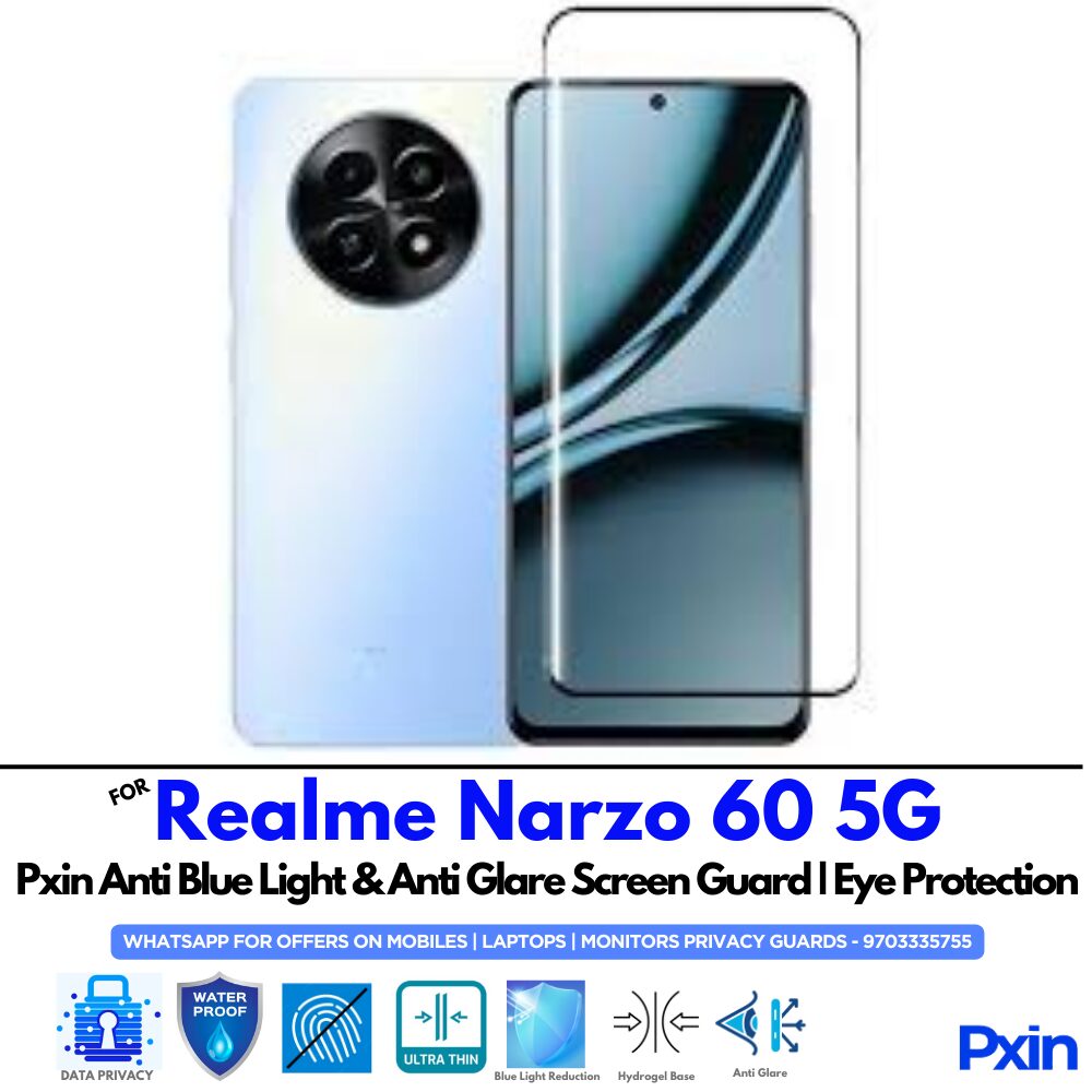 Shield your eyes with the Anti Blue Light & Anti Glare Screen Guard for realme Narzo 60 5G. Designed to reduce eye strain and glare with matte clarity. Hassle-free, bubble-free installation. Ideal for work, study, and gaming.