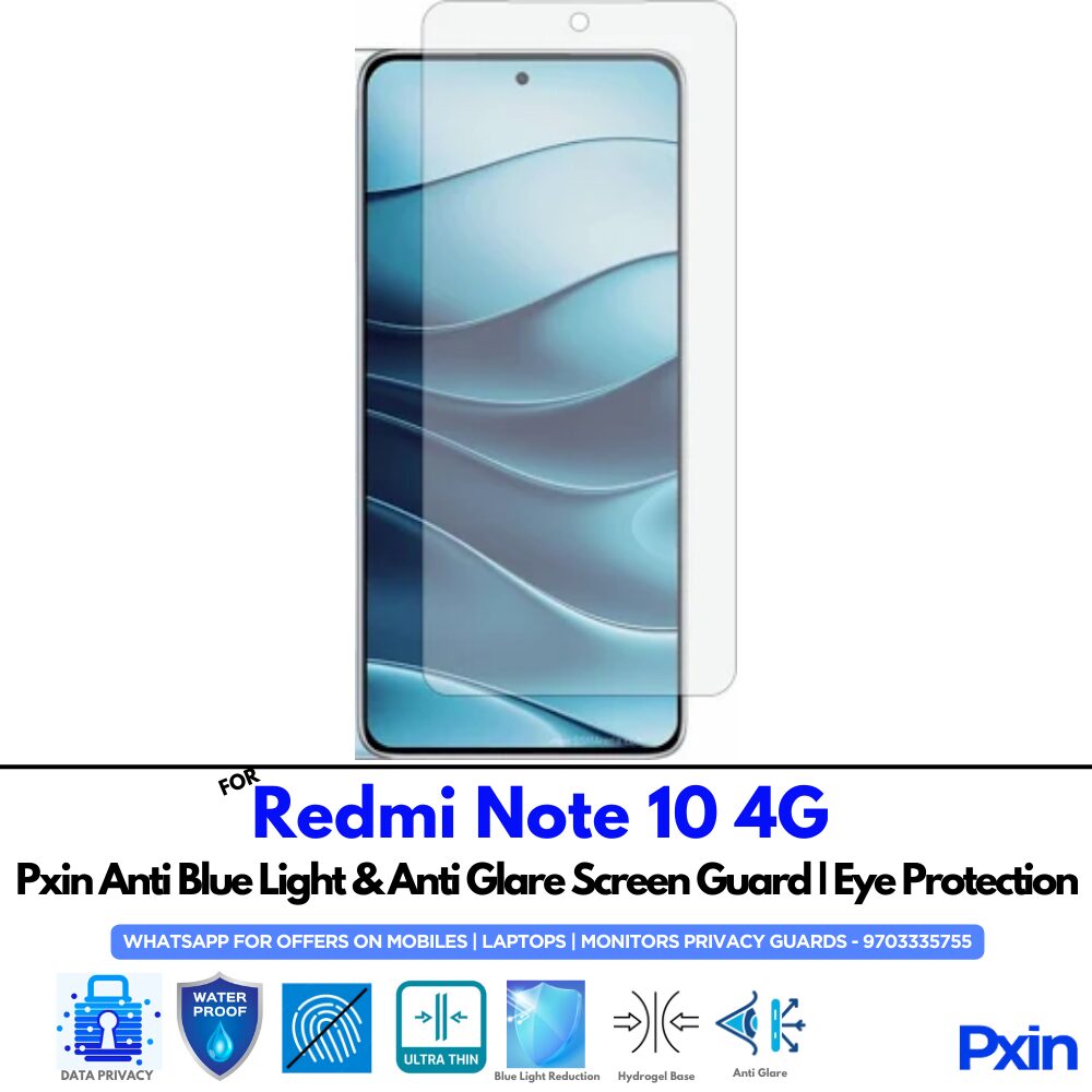 Shield your eyes with the Anti Blue Light & Anti Glare Screen Guard for Redmi Note 10 4G. Designed to reduce eye strain and glare with matte clarity. Hassle-free, bubble-free installation. Ideal for work, study, and gaming.