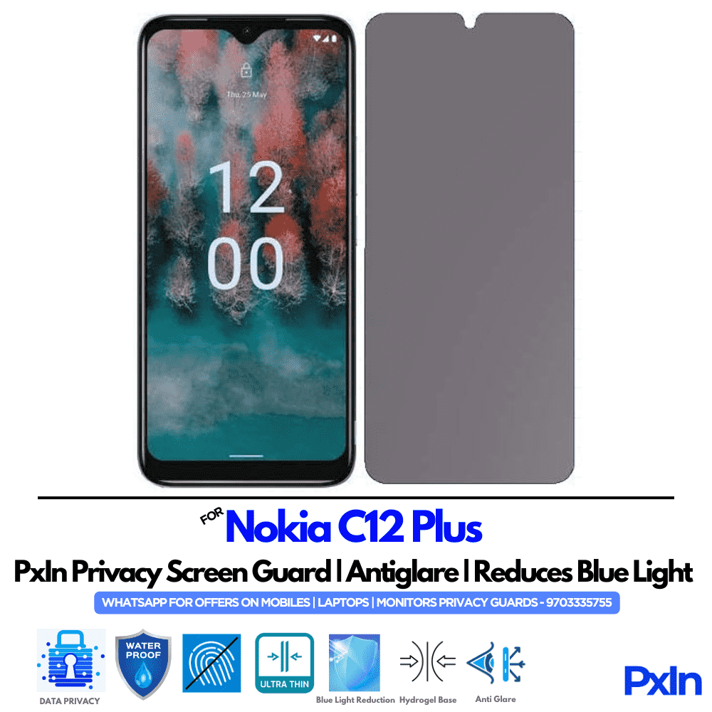 Perfectly cut for the Nokia C12 Plus Mobile, this privacy screen protector ensures easy, bubble-free installation, scratch resistance, and smooth touch sensitivity.