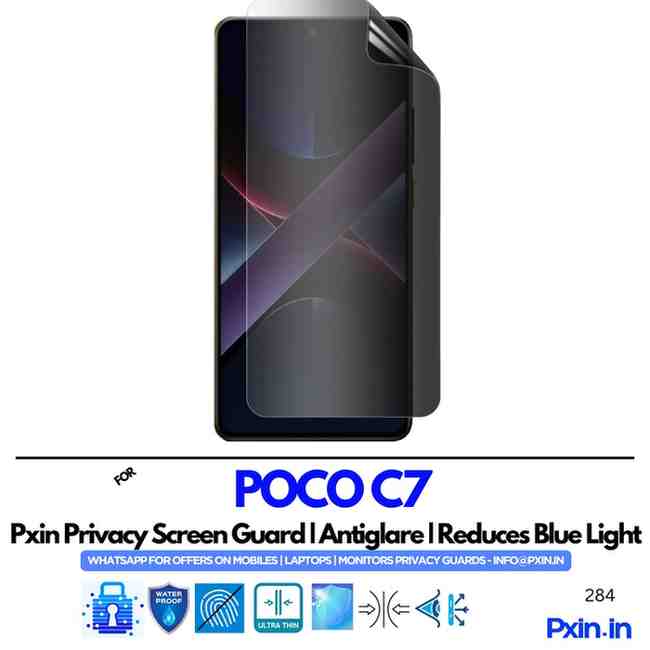 POCO C7 – Mobile Privacy Screen Guard | Anti-Spy | Anti Glare | Anti Blue Light | UV Block | PXIN