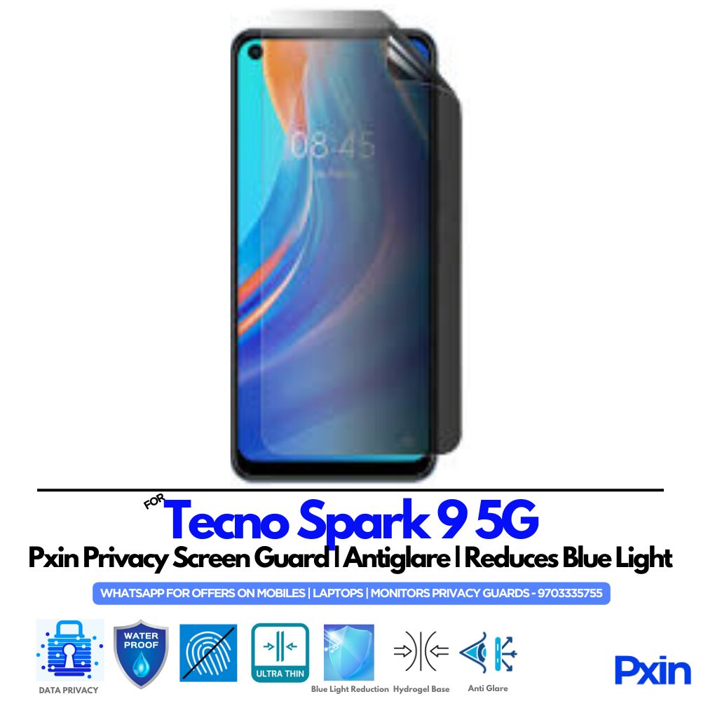 Shield your screen and eyes with the Privacy (Anti Blue Light & Anti Glare) Screen Guard for Tecno Spark 9 5G. Enjoy full screen privacy, reduced eye strain, and glare-free clarity – perfect for work, travel, or study.