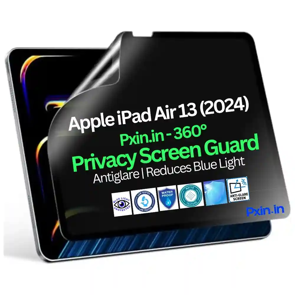 Protect your Apple iPad Air 13 (2024) with Pxin Privacy Screen Guard with Anti-Glare & Anti Blue Light technology.