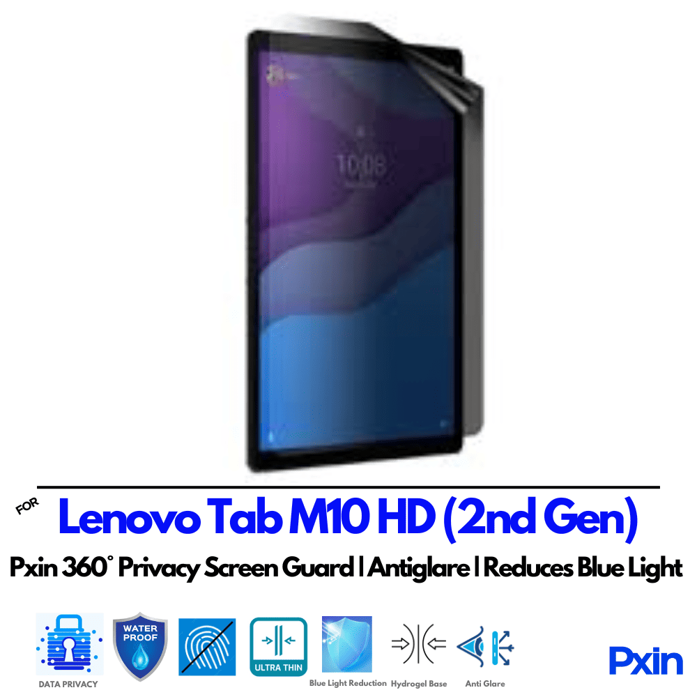 Protect your Lenovo Tab M10 HD (2nd Gen) with Pxin Privacy Screen Guard with Anti-Glare & Anti Blue Light technology.
