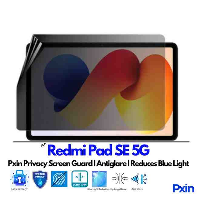 Protect your Redmi Pad SE 5G with Pxin Privacy Screen Guard with Anti-Glare & Anti Blue Light technology.