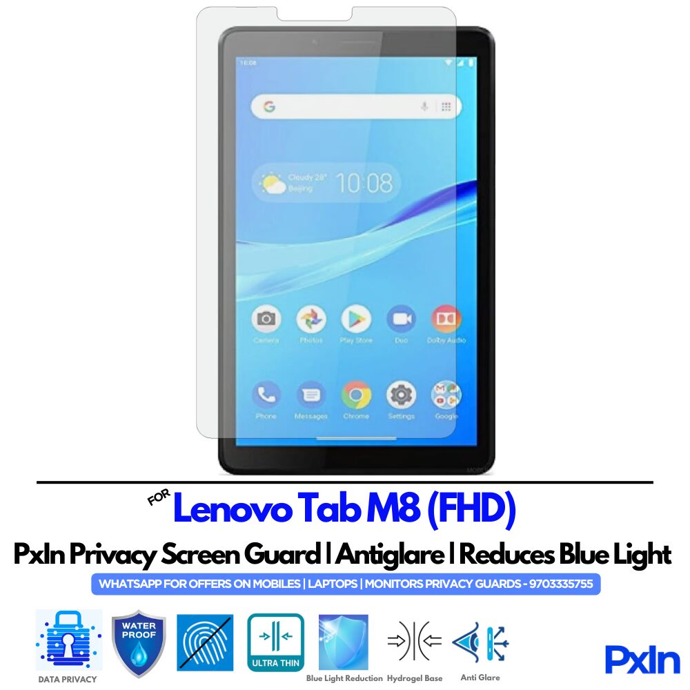Protect your Lenovo Tab M8 (FHD) with Pxin Privacy Screen Guard with Anti-Glare & Anti Blue Light technology.