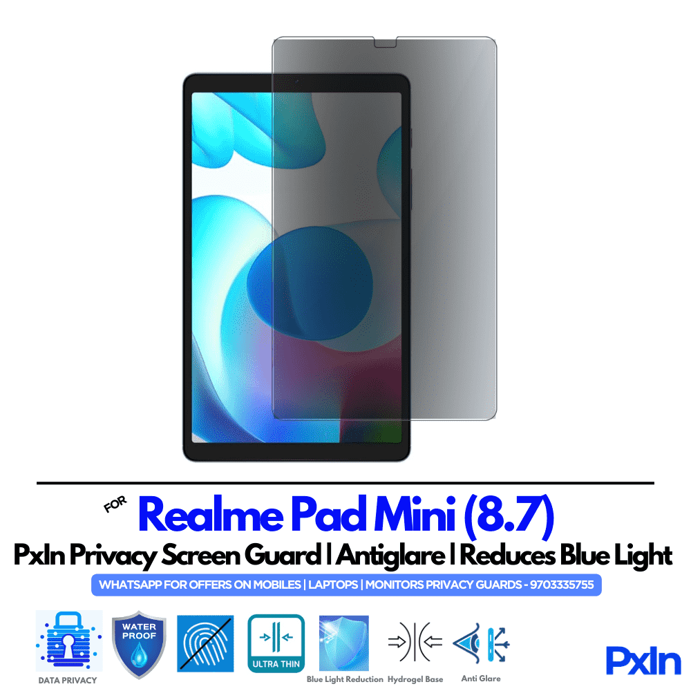 Protect your Realme Pad Mini (8.7) with Pxin Privacy Screen Guard with Anti-Glare & Anti Blue Light technology.