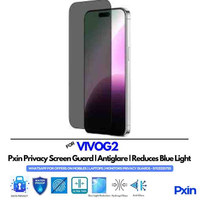 Protect your screen and your eyes with our 3-in-1 solution. This screen guard combines cutting-edge Privacy Filter, Anti Blue Light, and Anti Glare technologies to give you maximum protection and comfort.Specially designed for your device, Privacy Screen Guard for VIVO G2 Mobile uses premium optical engineering to block side views for complete privacy, while filtering harmful light through our advanced BLUVLightBlock® Technology.