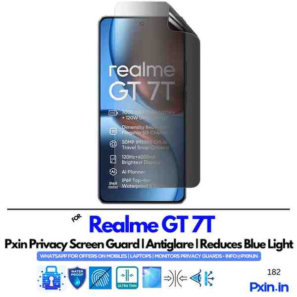 Realme GT 7T – Mobile Privacy Screen Guard | Anti-Spy | Anti Glare | Anti Blue Light | UV Block | PXIN