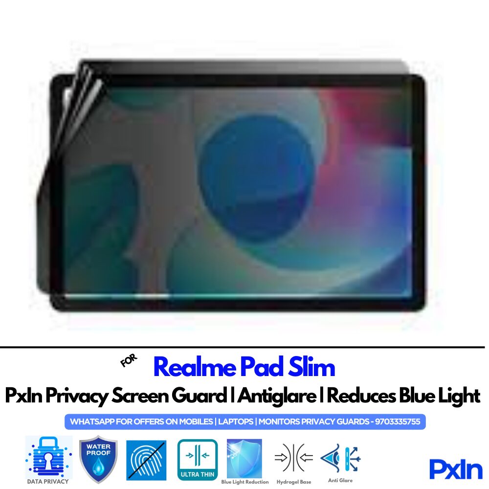 Protect your Realme Pad Slim with Pxin Privacy Screen Guard with Anti-Glare & Anti Blue Light technology.