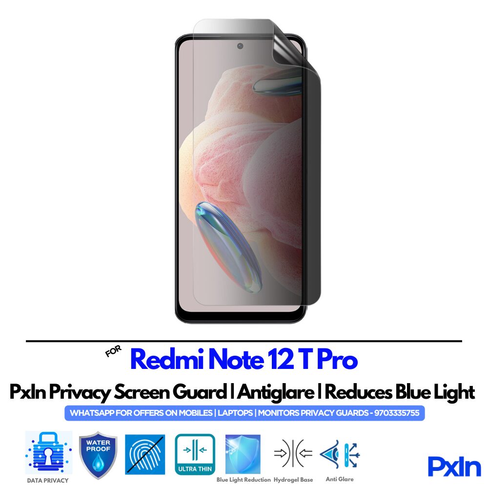 Perfectly cut for the Redmi Note 12 T Pro Mobile, this privacy screen protector ensures easy, bubble-free installation, scratch resistance, and smooth touch sensitivity.