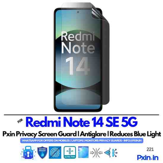 Shield your screen and eyes with the Privacy (Anti Blue Light & Anti Glare) Screen Guard for Redmi Note 14 SE 5G. Enjoy full screen privacy, reduced eye strain, and glare-free clarity – perfect for work, travel, or study.