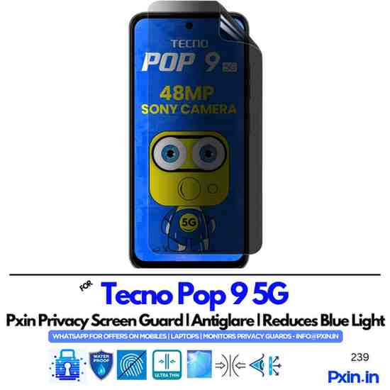 Tecno Pop 9 5G – Mobile Privacy Screen Guard | Anti-Spy | Anti Glare | Anti Blue Light | UV Block | PXIN