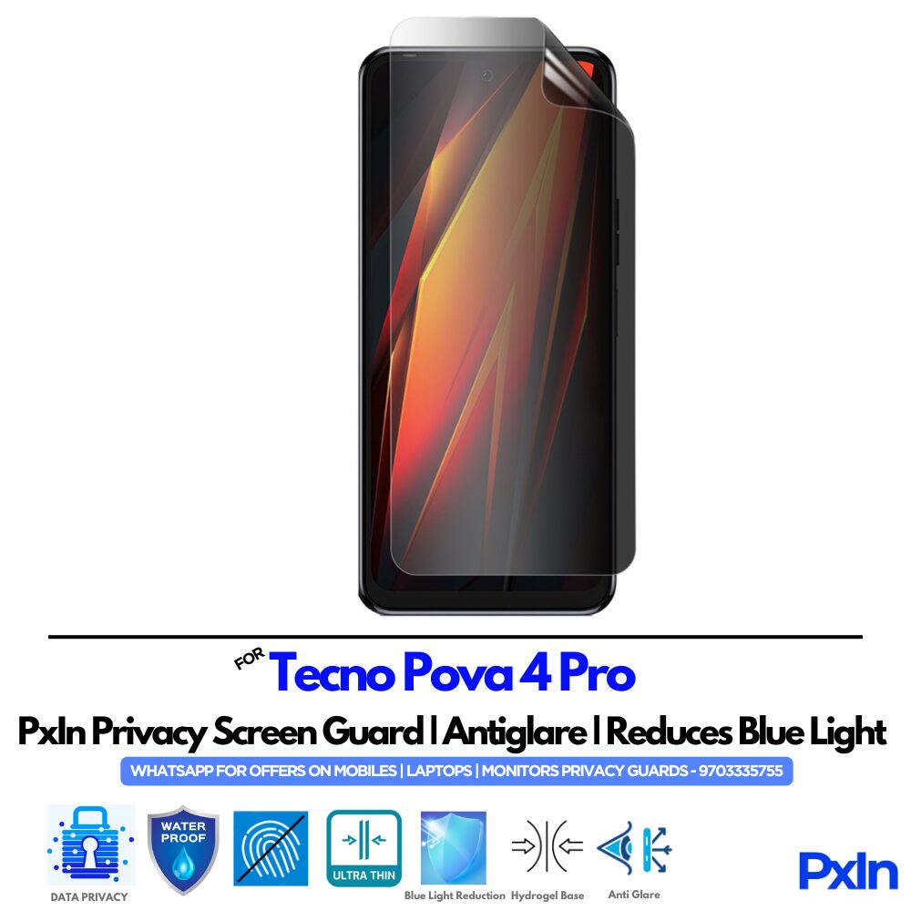 Protect your screen and your eyes with our 3-in-1 solution. This screen guard combines cutting-edge Privacy Filter, Anti Blue Light, and Anti Glare technologies to give you maximum protection and comfort.Specially designed for your device, Privacy Screen Guard for Tecno Pova 4 Pro Mobile uses premium optical engineering to block side views for complete privacy, while filtering harmful light through our advanced BLUVLightBlock® Technology.