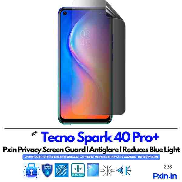 Tecno Spark 40 Pro+ – Mobile Privacy Screen Guard | Anti-Spy | Anti Glare | Anti Blue Light | UV Block | PXIN