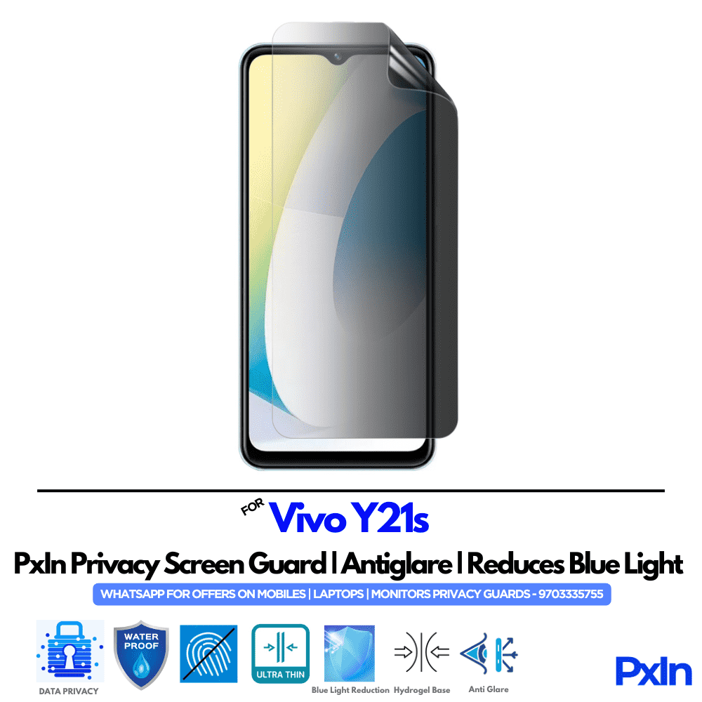 Protect your screen and your eyes with our 3-in-1 solution. This screen guard combines cutting-edge Privacy Filter, Anti Blue Light, and Anti Glare technologies to give you maximum protection and comfort.Specially designed for your device, Privacy Screen Guard for VIVO Y21s Mobile uses premium optical engineering to block side views for complete privacy, while filtering harmful light through our advanced BLUVLightBlock® Technology.