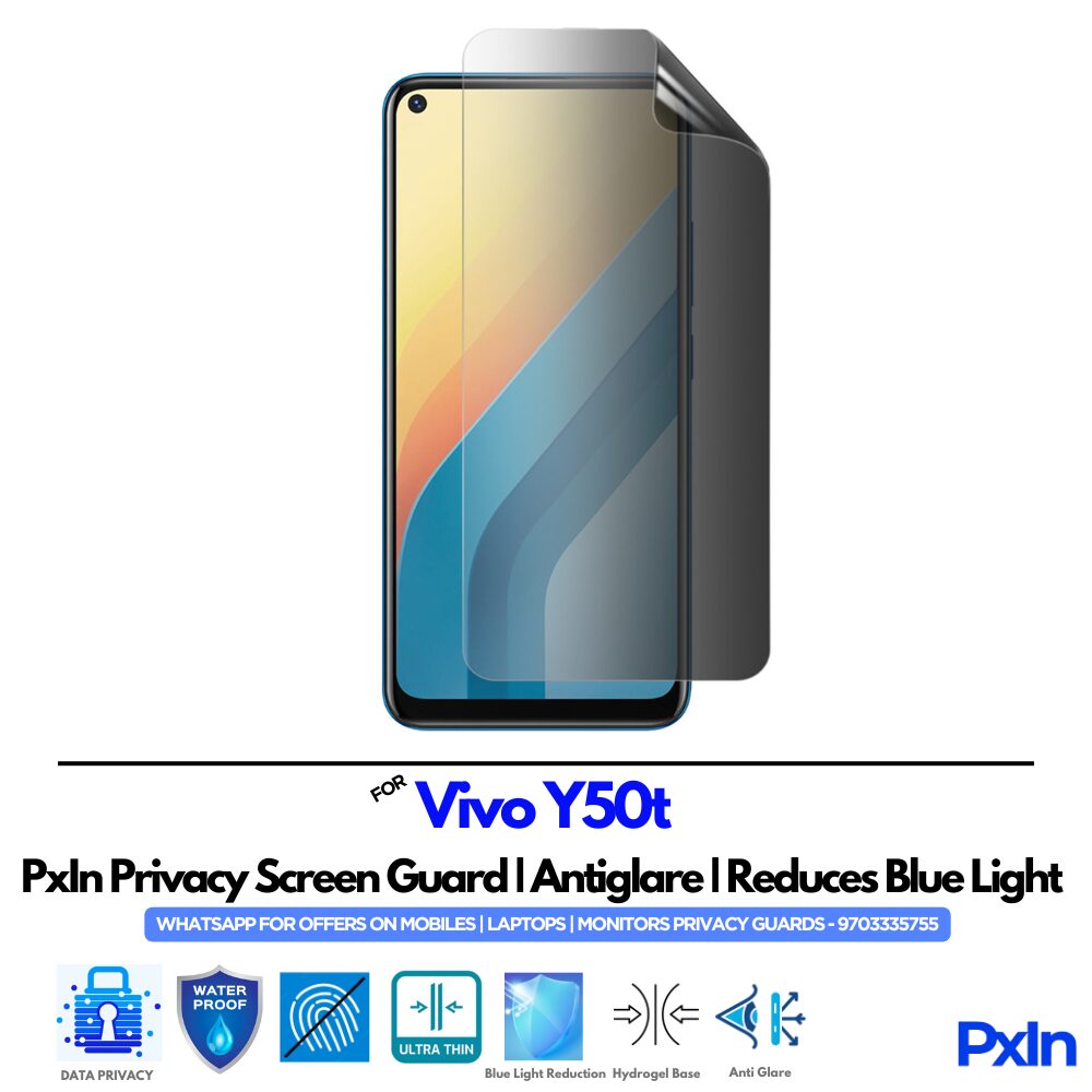 Shield your screen and eyes with the Privacy (Anti Blue Light & Anti Glare) Screen Guard for VIVO Y50t Mobile. Enjoy full screen privacy, reduced eye strain, and glare-free clarity – perfect for work, travel, or study.